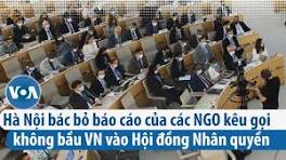 Hà Nội bác bỏ báo cáo của các NGO kêu gọi không bầu VN vào Hội đồng Nhân quyền Trong phần phân tích về tình hình nhân quyền ở Việt Nam, báo cáo của các tổ chức này cho rằng Hà Nội "vi phạm nhân quyền nghiêm trọng.